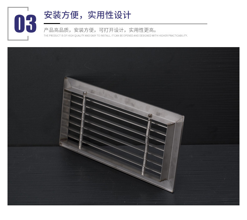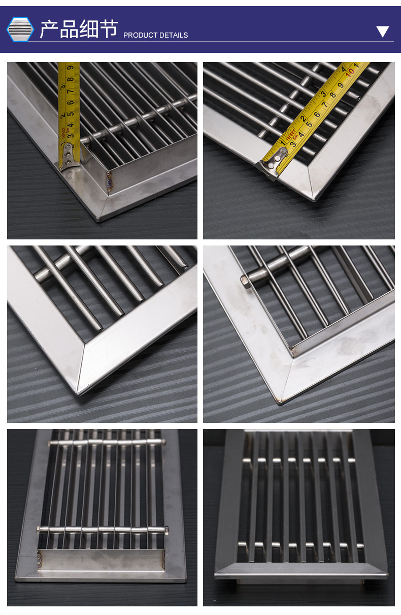 不銹鋼風口通常也是指空調(diào)的回風口,一般來說它的后面都會帶著過濾網(wǎng),不銹鋼風口表面還會有黑色的灰塵積在角落里,很容易區(qū)分出風口是空調(diào)系統(tǒng)中送風用的,一般它的后面不會帶過濾網(wǎng),表面會很干凈,送冷風時可能還會有冷凝水積聚在上面;不銹鋼風口通常也是指空調(diào)的回風口,一般來說它的后面都會帶著過濾網(wǎng),不銹鋼風口表面還會有黑色的灰塵積在角落里,很容易區(qū)分;新不銹鋼風口是用風機把外面的自然風直接送到所需區(qū)域,一般也帶著過濾網(wǎng);出風口一般為方形散流器,呈方形多層可拆卸,一般用防火帆布連接;送冷風時水珠掛在上面!有回風口多呈長方形,有稱單(雙)層百葉風口,并帶有過濾網(wǎng);主要作用在于把污濁的空氣吸回去。新不銹鋼風口則較小,每個房間貼墻安裝或是于送風口呈直線的必是新風口無疑!